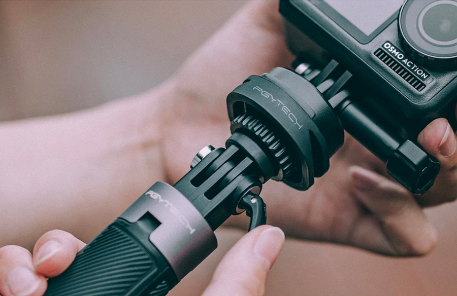 Adaptorul de trepied PGYTECH pentru Osmo Action este adaptat pentru o extensie functionala si ofera mai multe optiuni de conectare pentru camera de actiune Osmo Action. Adaptorul dispune de doua deschideri laterale cu eliberare rapida, care se potrivesc cu exactitate orice montura cu eliberare rapida. O parte cu eliberare rapida a adaptorului este deserveste pentru montarea adeziva a camerei Osmo Action. Instalarea este una usoara si fara probleme. Filetul integrat de ¼” se poate conecta cu o gama mare de echipament foto cu un surub de ¼”.