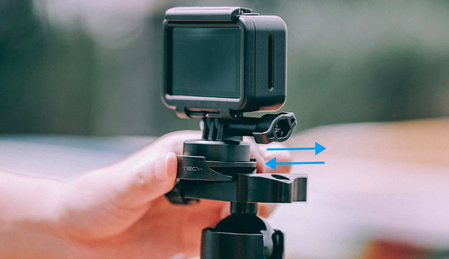 Cu ajutorul unei interfețe universale cu filet de 1/4 inch, se poate conecta la echipamente externe care conțin o interfață universală pentru cameră de acțiune.
