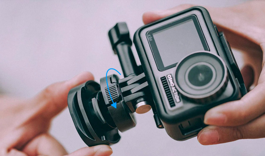Designul cu eliberare rapidă, adaptat pentru montarea adezivă a OSMO ACTION pe o parte a adaptorului, permite trecerea rapidă între diferite scenarii de utilizare.