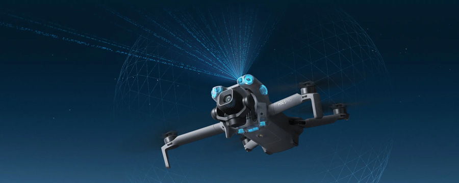 Echipat cu un LiDAR orientat înainte, Mini 5 Pro are camere de tip fisheye în față și în spate pentru a detecta în direcțiile înainte, înapoi, stânga, dreapta și sus. Partea inferioară este prevăzută cu lentile binoculare și un senzor infraroșu 3D, permițând detectarea obstacolelor omnidirecționale.