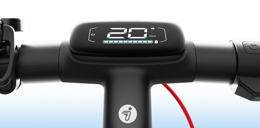 Ecranul de 3 inch afișează informații în timp real, cum ar fi viteza, modurile de condus și starea bateriei. Ecranul rămâne vizibil chiar și în lumina directă a soarelui.