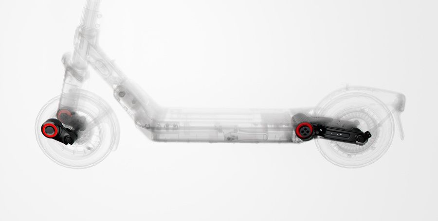 Echipat cu o distanță de trailing mare de 67 mm, combinată cu un unghi al tijei și o amortizare a direcției reglate cu precizie, trotineta sporeste rezistența la perturbații și menține un condus stabil în condiții imprevizibile.
