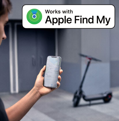 Pur și simplu activați Apple Find My prin aplicația Segway Mobility și asociați-l cu eKickScooter. Apoi, detectați cu ușurință eKickScooter-ul folosind aplicația „Find My” de pe dispozitivele Apple, ori de câte ori este necesar.